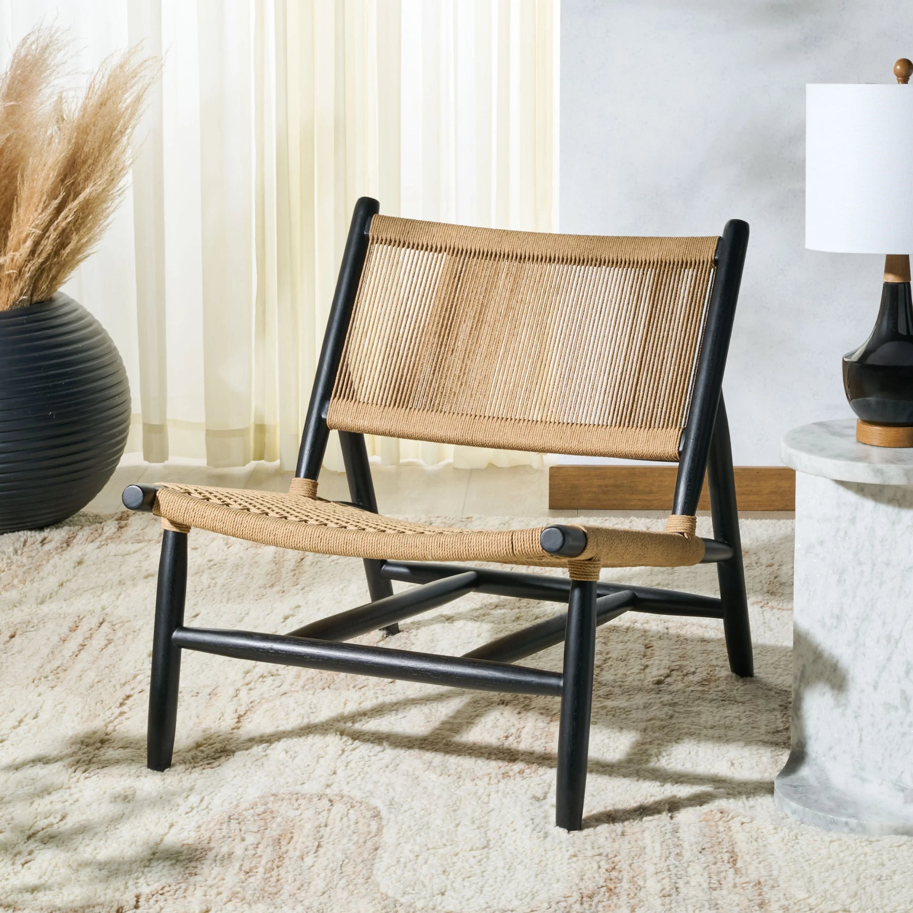 Discover the perfect blend of modern style and natural elegance with the Chyanne Woven Accent Chair. Featuring a sleek black finish paired with sturdy teak wood construction, this chair offers both durability and sophisticated charm. The intricate woven design adds texture and visual interest, making it a standout piece in any room—from your living area to bedroom or study. With its comfortable seating and refined craftsmanship, the Chyanne Accent Chair elevates your home décor while providing a cozy spot to relax. Embrace style and comfort with this exquisite woven chair that complements a variety of interiors.