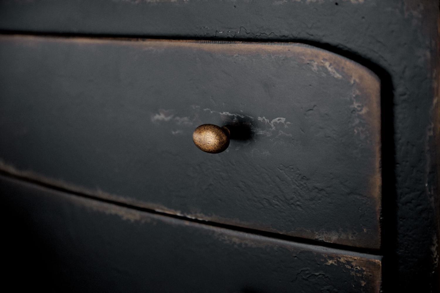 Rustic and romantic, the two-drawer Ciao Bella Nightstand will bring a European farmhouse ambience to your bedroom retreat. Crafted of Poplar and Hardwood Solids with Maple Veneer, the nightstand is finished an exquisite soft black finish that is layered and distressed to look like it is aged gracefully through the decades. Features include a drop-in felt liner in the top drawer, cedar-lined bottom drawer, a cord clip on the back and a 3-plug outlet with USB port for charging electronics.