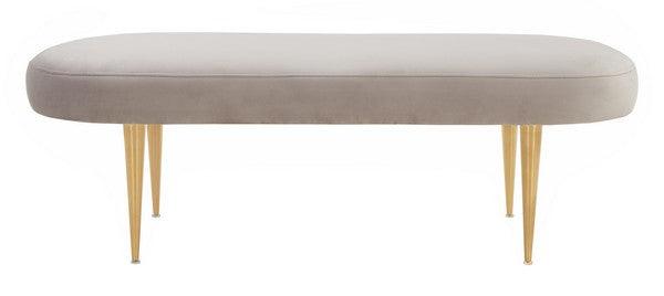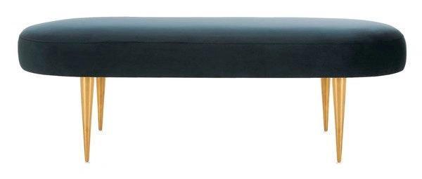 Add a touch of elegant glamour to any modern decor with this velvet oval bench. Its retro gold legs and chic curves add the perfect amount of contemporary flair to any living room or bedroom.