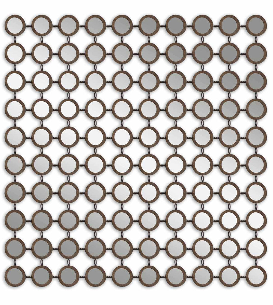 Numerous, Small Round Mirrors Are Joined By Hand Forged Metal To Create This Mirror. Finish Is Lightly Antiqued Silver Champagne Leaf.
