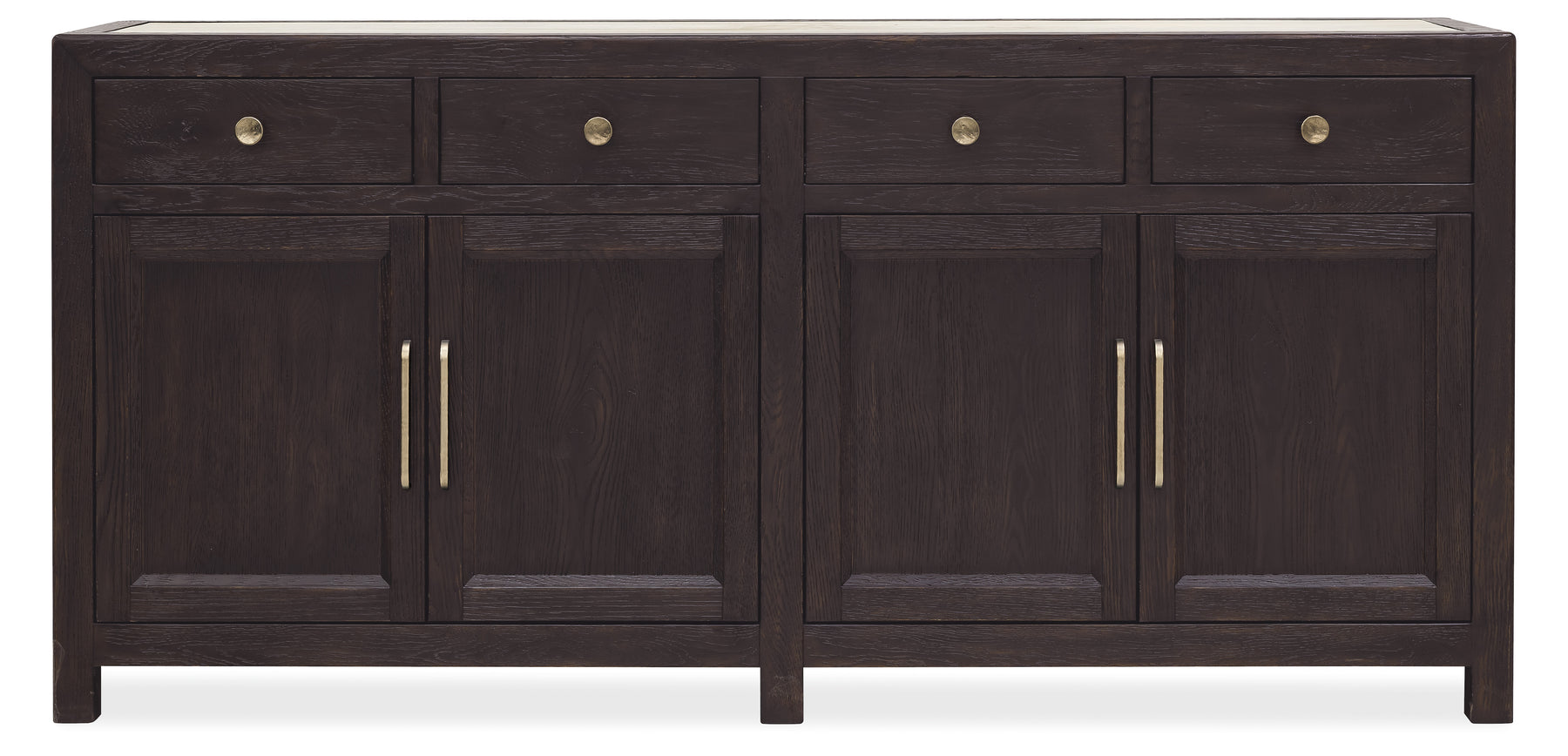 With its inset stone top and the warm Buckboard finish reminiscent of sun-faded oak, this buffet delivers both durability and rustic charm. Featuring four self-closing drawers with a removable silverware tray, four wood doors with soft-close hinges, and adjustable shelving, it provides ample storage while making a design statement. The natural stone surface introduces texture and luxury, ideal for modern rustic dining spaces.