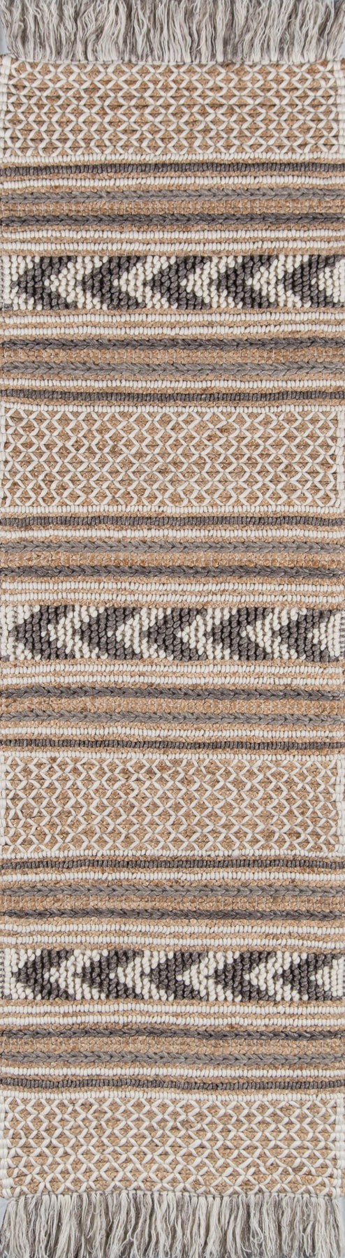 Humble materials meet high-fashion aesthetic in the luxe fabrication of this modern area rug collection. The inspired assortment of Southwestern-style carpets is composed with natural jute, cotton and wool fibers that combine to create a tapestry of textural tribal designs and geometric motifs. Handwoven using a variety of braided, loop and threaded techniques, each finely crafted floorcovering features fringed embellishment that enhances its relaxed sensibility with down-to-earth flourish.