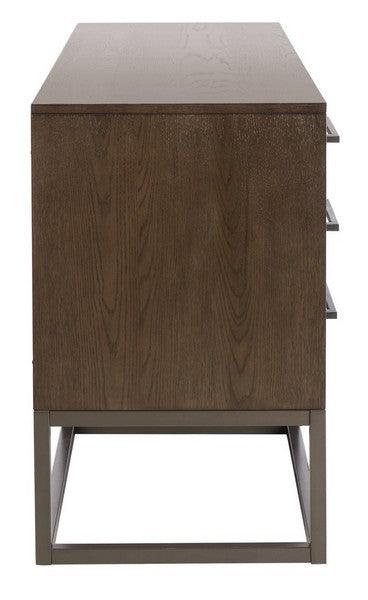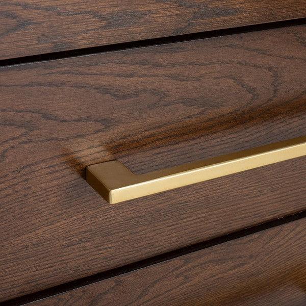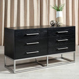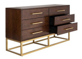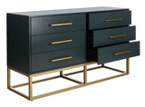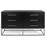 Alive with dynamic chic, this Estelle Dresser brings instant élan to any bedroom. Estelle's contemporary finish is glamorously accented by sleek brass or gunmetal pulls and matching open frame, making a bold modern statement. Storage-savvy designers love its six drawers.
