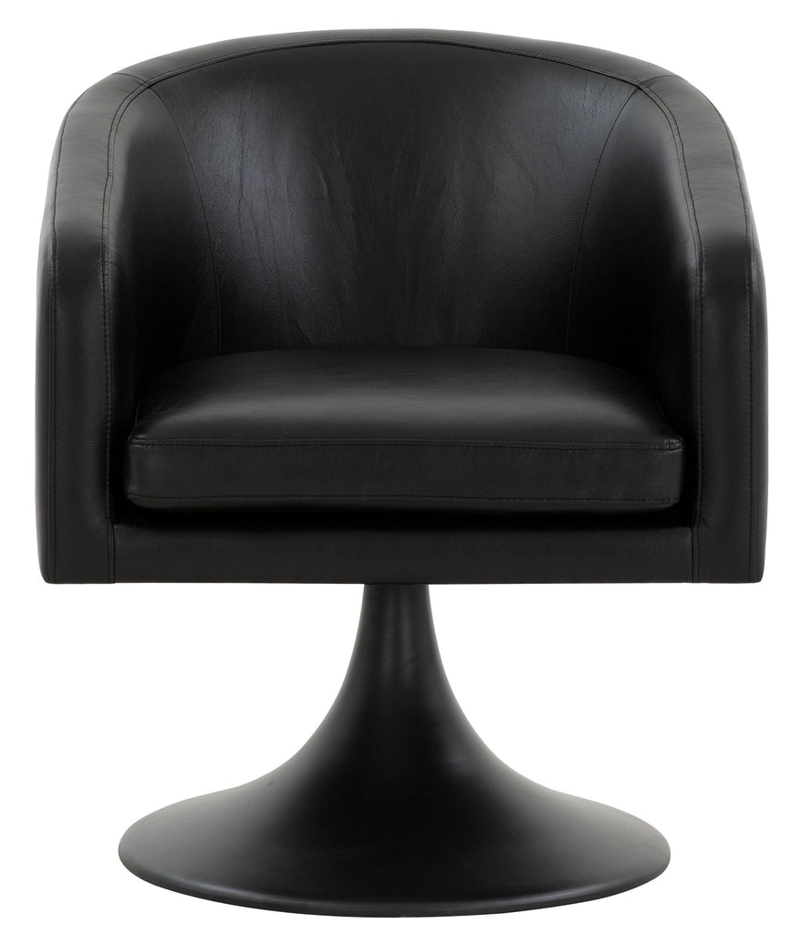 A spellbinding spectacle for the senses, this Gonzalez Chair abounds with unapologetic, theatric style. Gonzalez's gold stainless steel pedestal base dramatically flairs at the bottom, allowing for its vegan leather seat to appear as if floating midair, making a bold modern statement in any room.