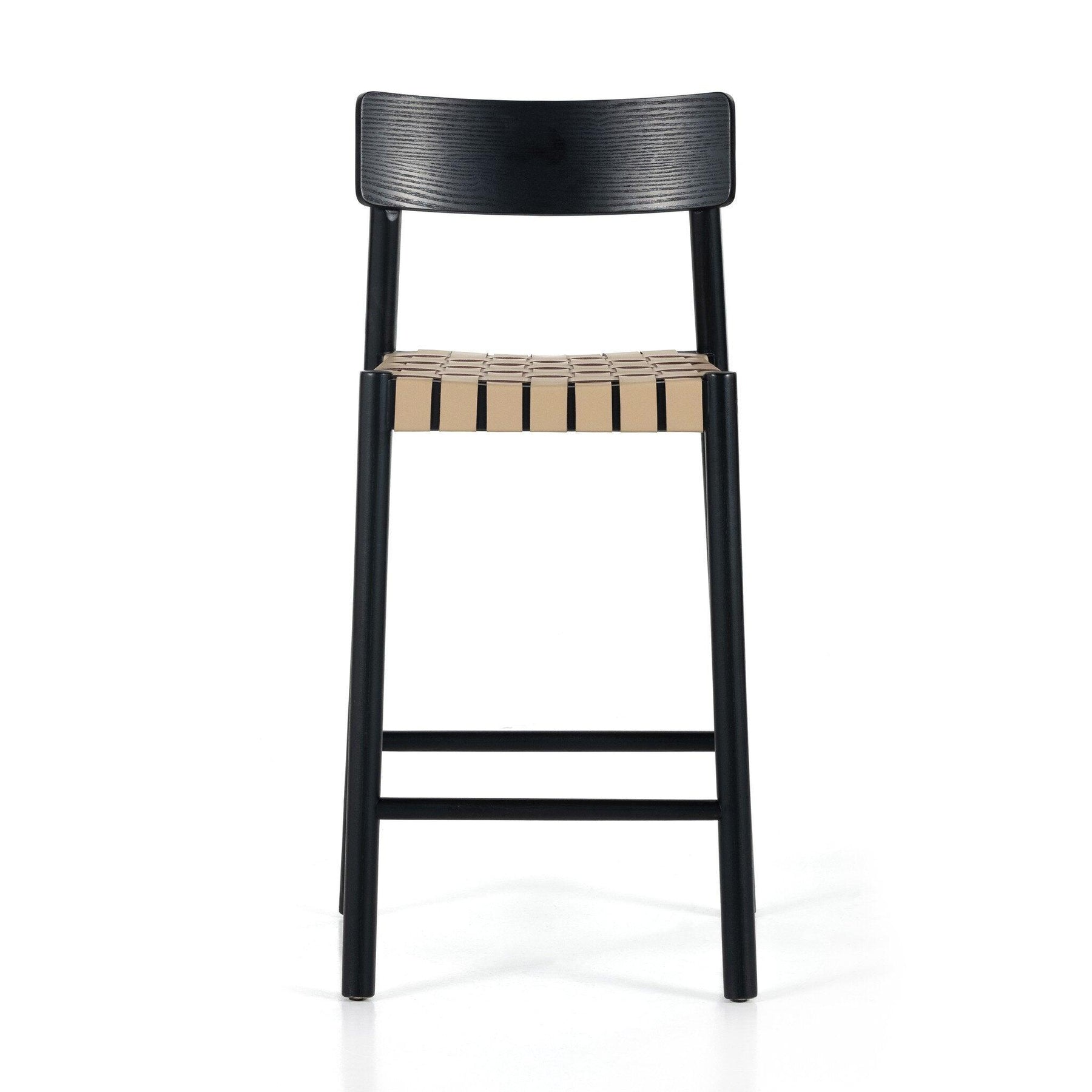 Almond leather and black-finished ash fuse to craft a slim stylish silhouette. A classic basketweave seat pattern complements the simple lines of this counter stool's streamlined frame.