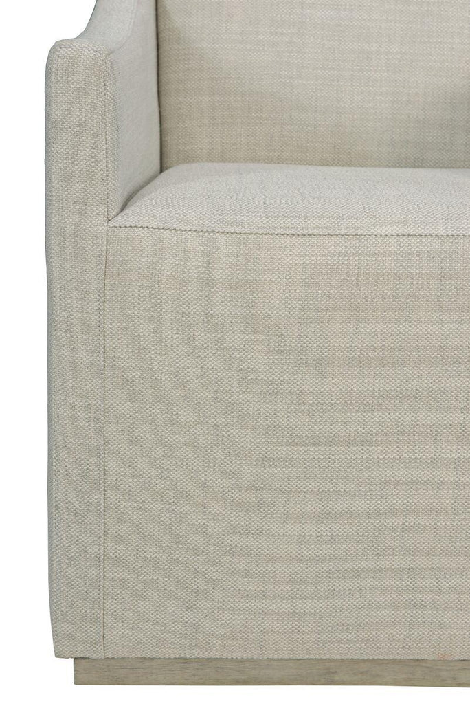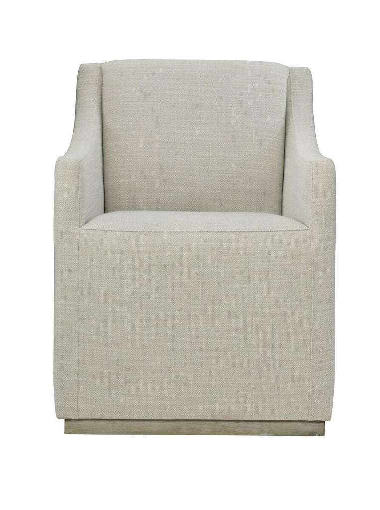 Casey Arm Chair Morel Finish. Upholstered With Stiched Slipcover Look. Small Plinth Base With Non-Marring Heavy-Duty Casters.