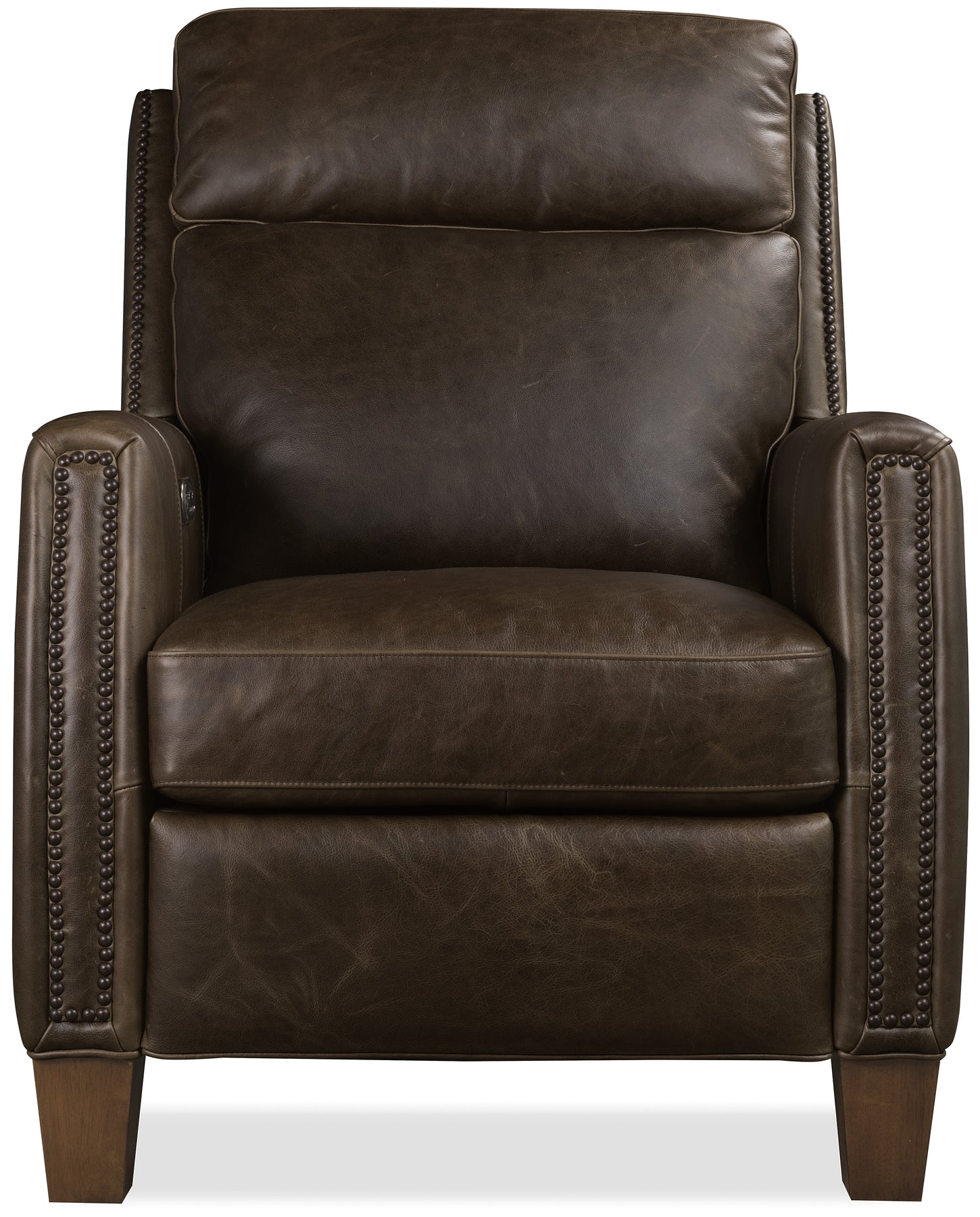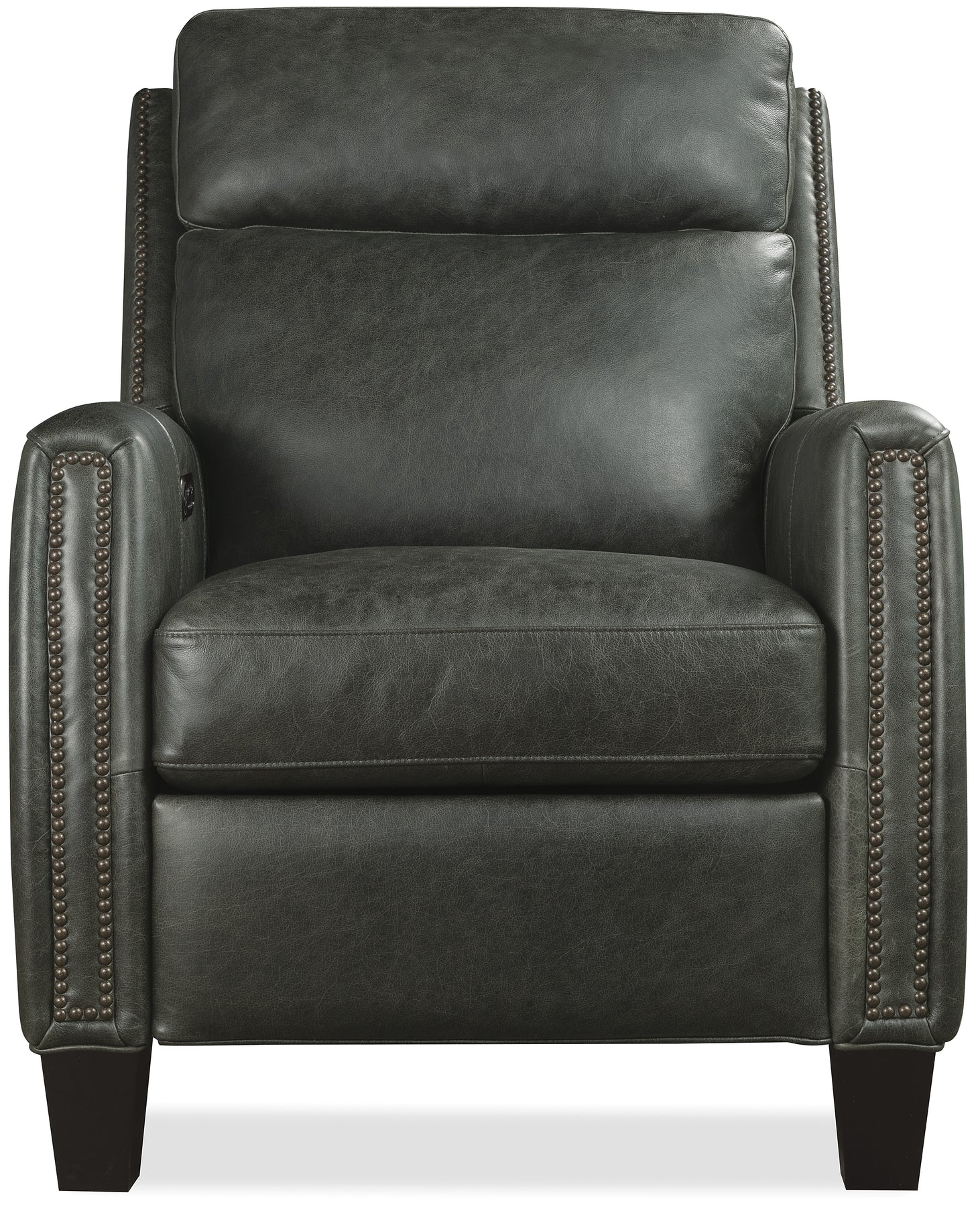 The Jacklyn Recliner in Jala Spanish Moss leather channels timeless craftsmanship with modern ease. With bronze nailhead accents on the back and arms, power recline, and a subtle pop-up headrest, this recliner is both luxurious and practical. Ideal for transitional or heritage-inspired interiors.
