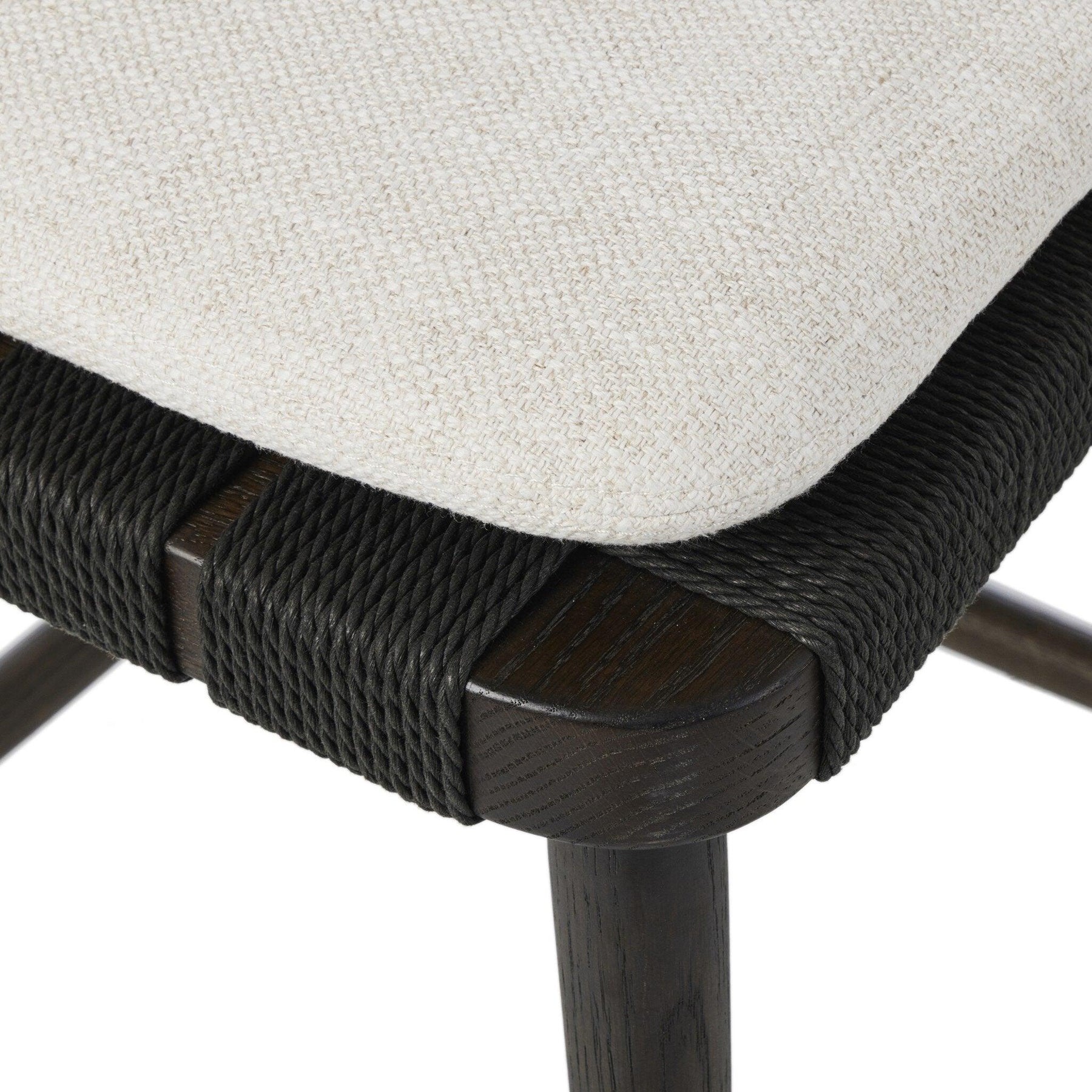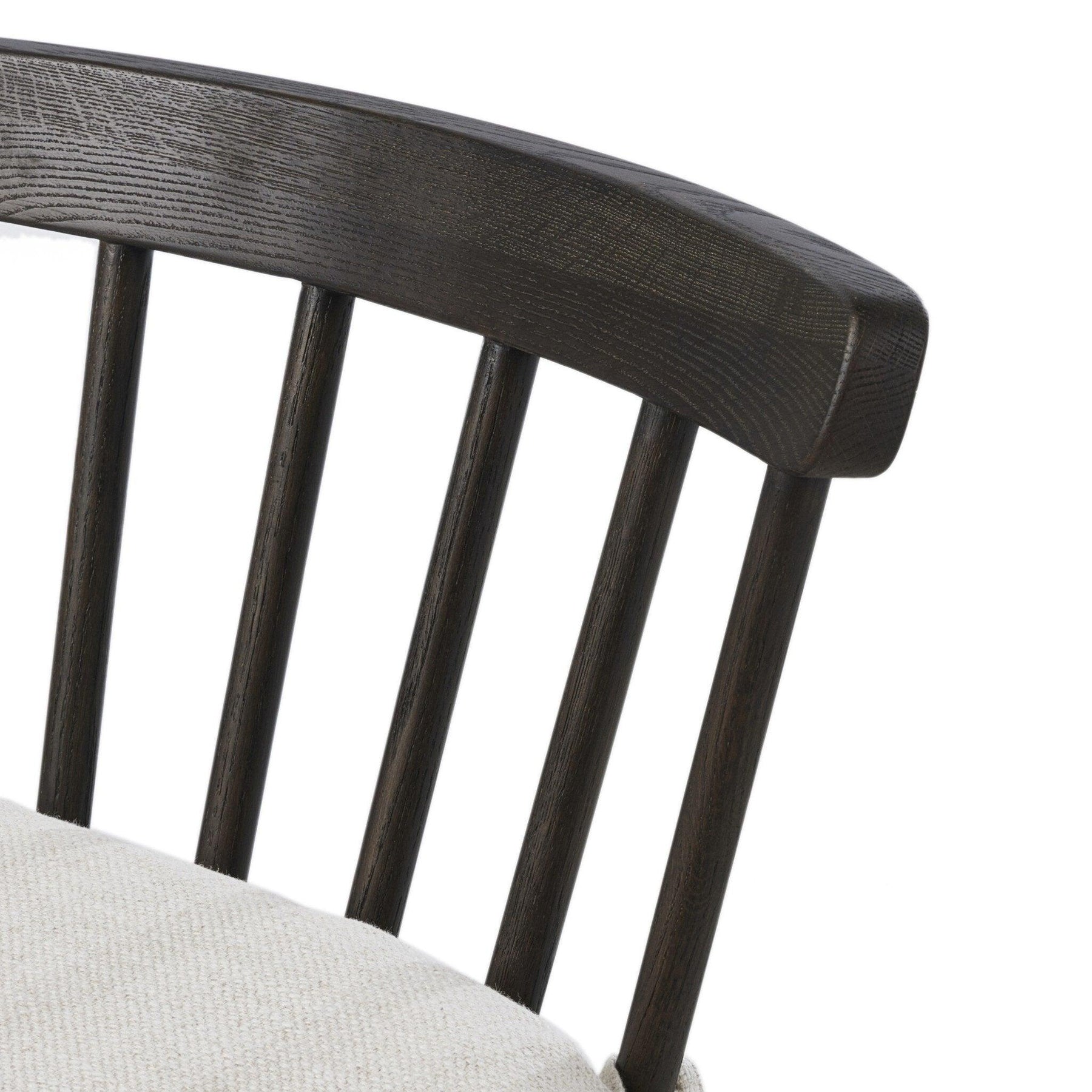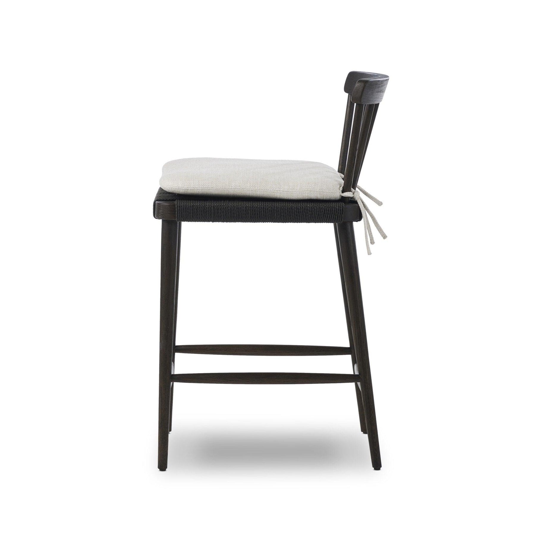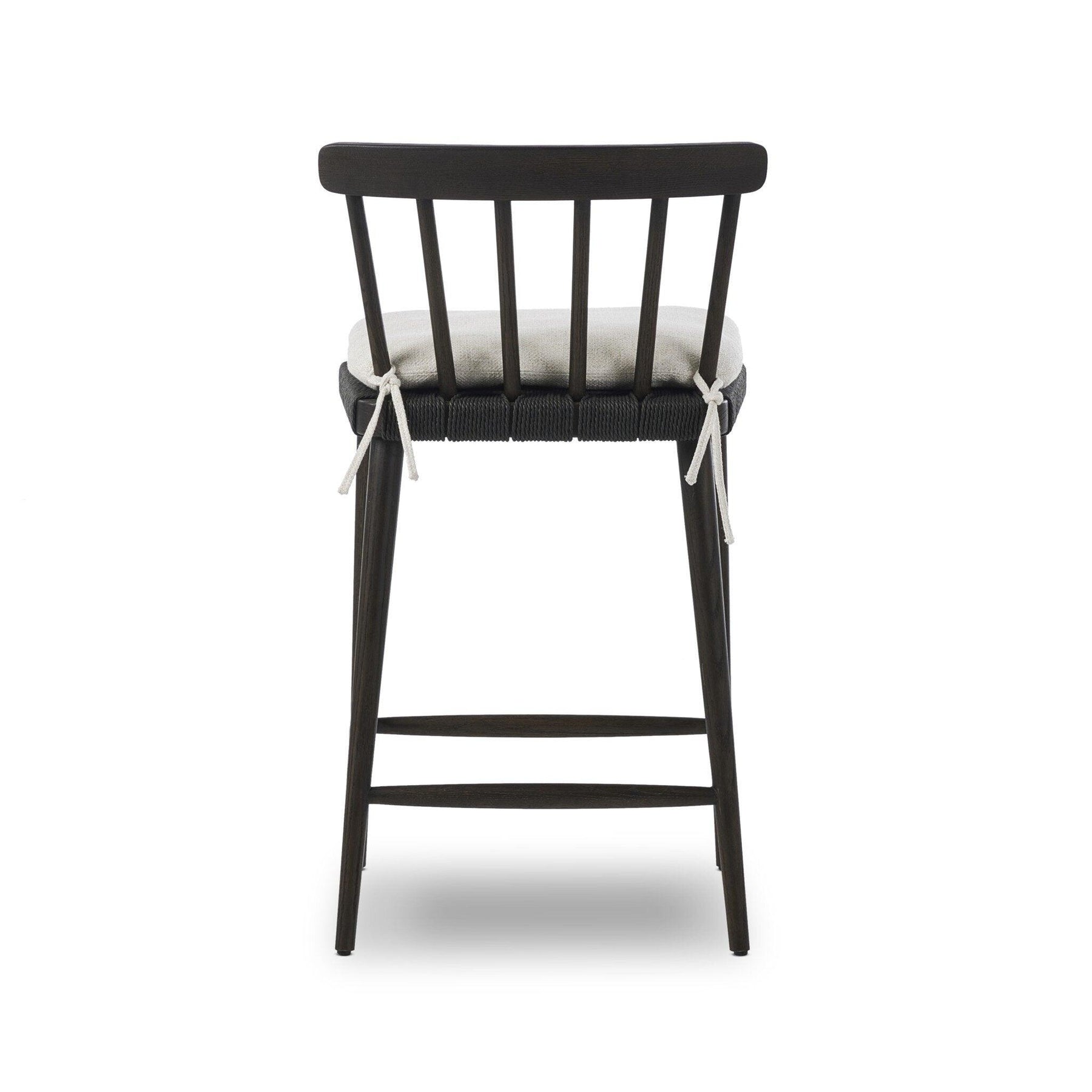 Black oak and charcoal basketweave pair up for a monochromatic and textural take on the counter stool. With a mid-profile Windsor-style back and tapered legs the piece stays true to traditional form.