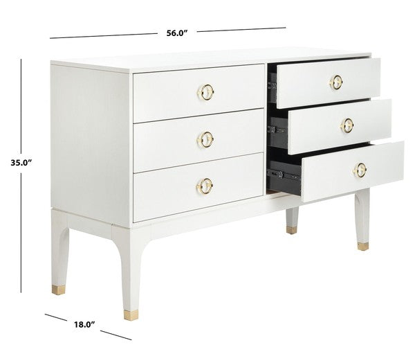 Elegant and refined, this contemporary dresser brings style and substance to any interior. Designed with a blend of clean lines, chic hardware and a timeless finish, its ample six drawers add storage to any chic bedroom.