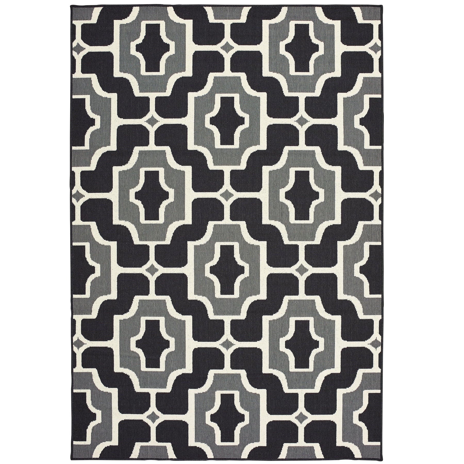 Marina is an elegant new introduction for indoor or outdoor use and features a 100% polypropylene looped yarn made in Egypt. It features a classic neutral palette using high contrast colors like black, ivory, deep navy, sand and cool gray. The collection includes casual but sophisticated patterns like updated geometrics and simplified traditionals that all feel fresh but timeless.