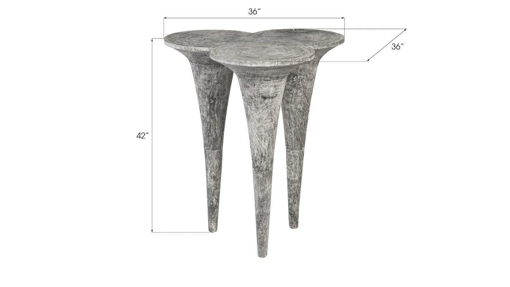 Made of a triad of golf-tee shapes, the Marley Gray Bar Table is a sexy bar table with a textural finish. The scalloped top that these shapes form make this a personable accent table in any space. We also offer bar tables in silver, faux bois, and burnt finishes; and coffee tables in copper, natural, gray stone, and burnt finishes. The Marley collection also includes bar stools in a number of finishes. Each of these reflects the ethos that Phillips Collection personifies: modern organic.