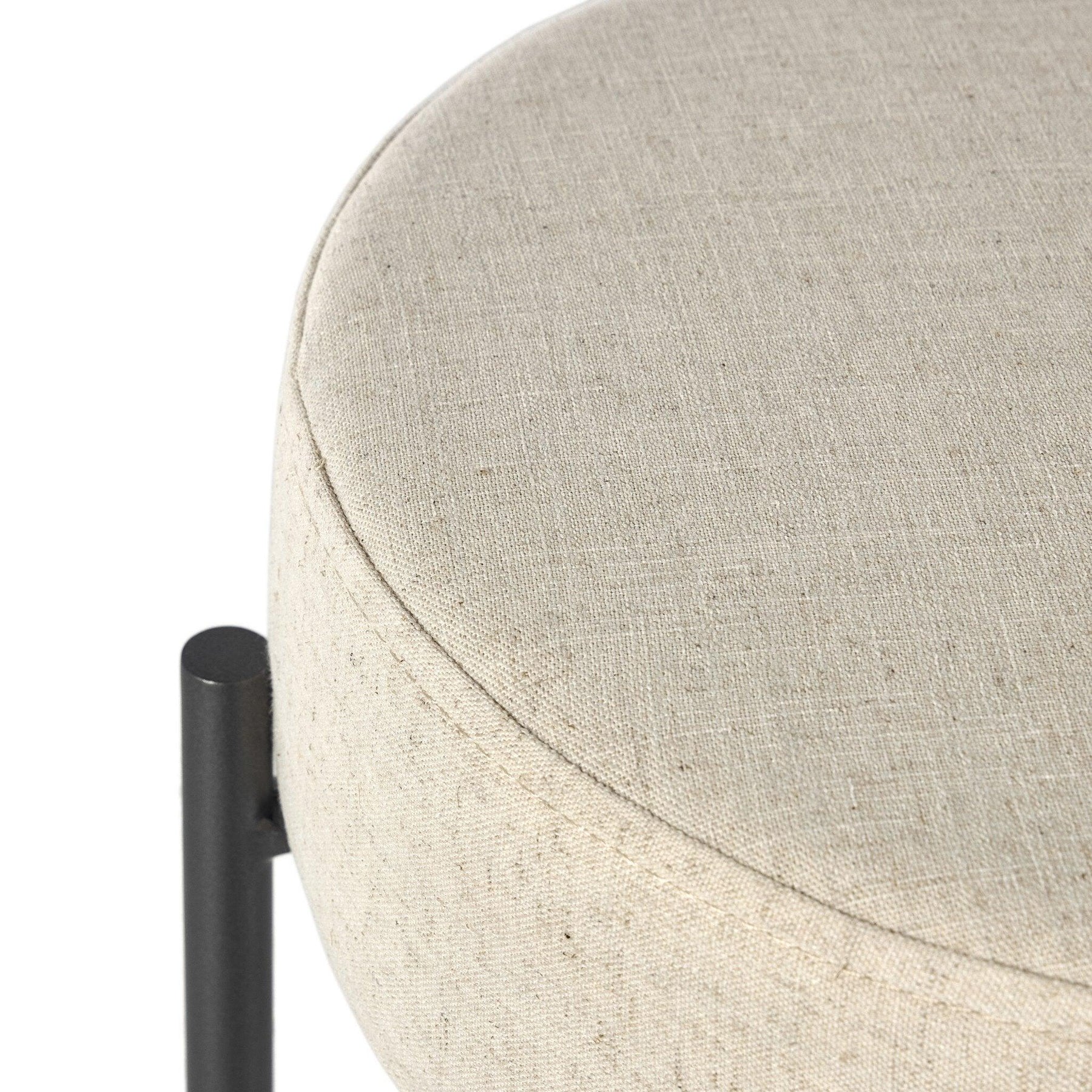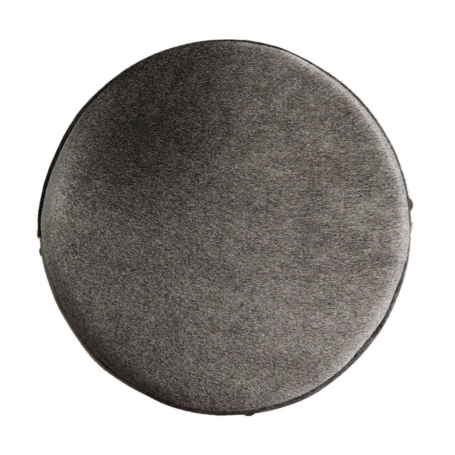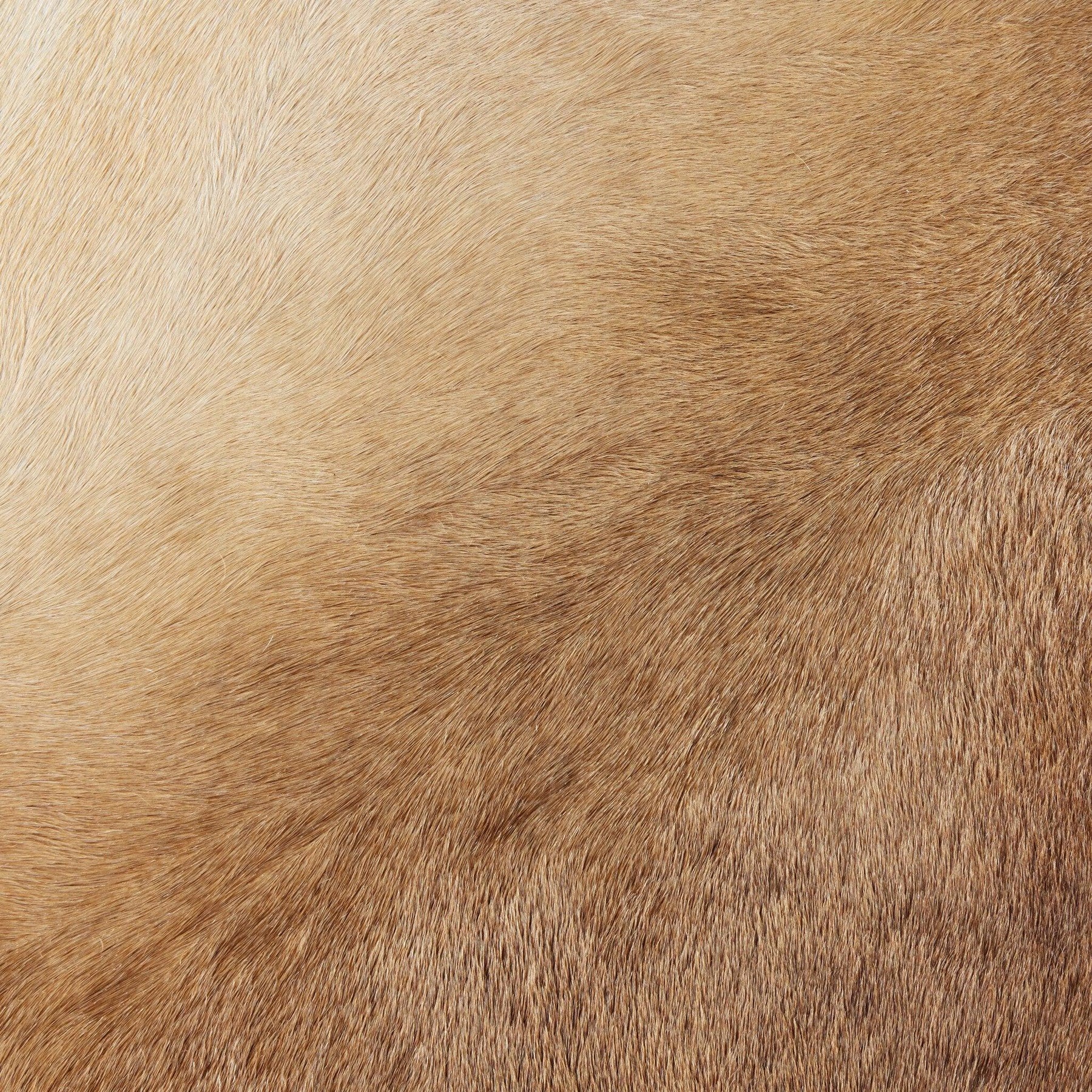 Slim and airy gunmetal-finished iron legs form a cradle-style frame for black and white speckled hide seating perfectly sized for the counter. No two hides are the same. A variance in hide color shape pattern and hair length is to be expected reflective of natural materials.