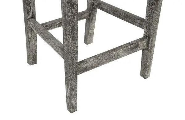 Made of chamcha wood, the Ophelia Counter Stool has a tremendous amount of personality due to the richness of its woodgrain and the texture of the gray / natural finishes. With exquisite craftsmanship, we have rescued the reclaimed chamcha wood from being one of nature’s finest castaways by making it into this elemental design statement. Because the wood for its back is reclaimed, there will be variations from piece to piece, including some with beautiful butterfly joints. We also offer this counter stool in a natural finish.