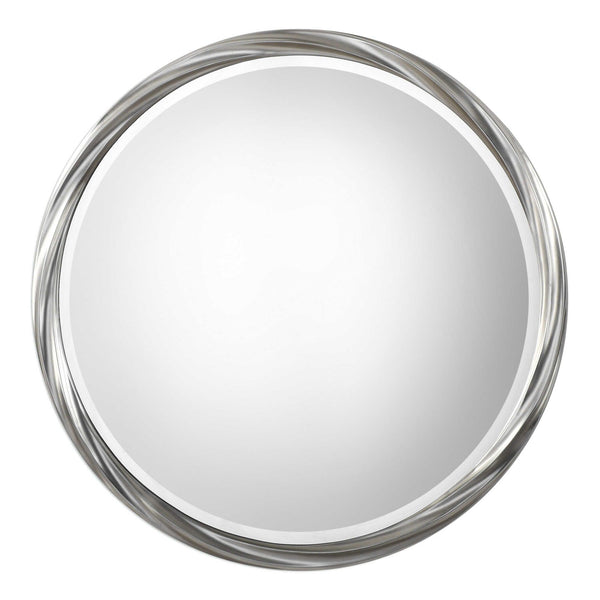 This Contemporary Design Features A Twisted Motif With A Hand Applied Metallic Silver Leaf Finish. Mirror Has A Generous 1 1/4" Bevel.