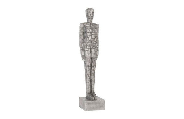 The Puzzle Woman Sculpture has been forged from metal to look as if sections of it were snapped into place like a Rubik’s Twist. Once its profile was set, our finish artisans gave it added patina with a mix of black and silver finishes. This is one of our products that would look so handsome in an industrial chic interior or an urban loft. We also offer a man sculpture and a coffee table in this family of products, each of which reflects the ethos that Phillips Collection personifies: modern organic.