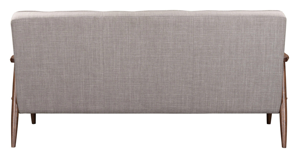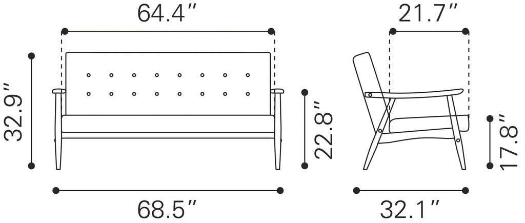 Add sleek simplicity to any living space with our Rocky three-seat modern sofa in soft, durable faux black leather. Perfectly pitched for comfort with its sturdy, solid wood frame, angular legs and sloped arms. Both the seat back and seat cushion is button tufted with a self-welt. Pair this handsome, compact sofa with the matching Rocky Arm Chair (sold separately) to complete your room.
