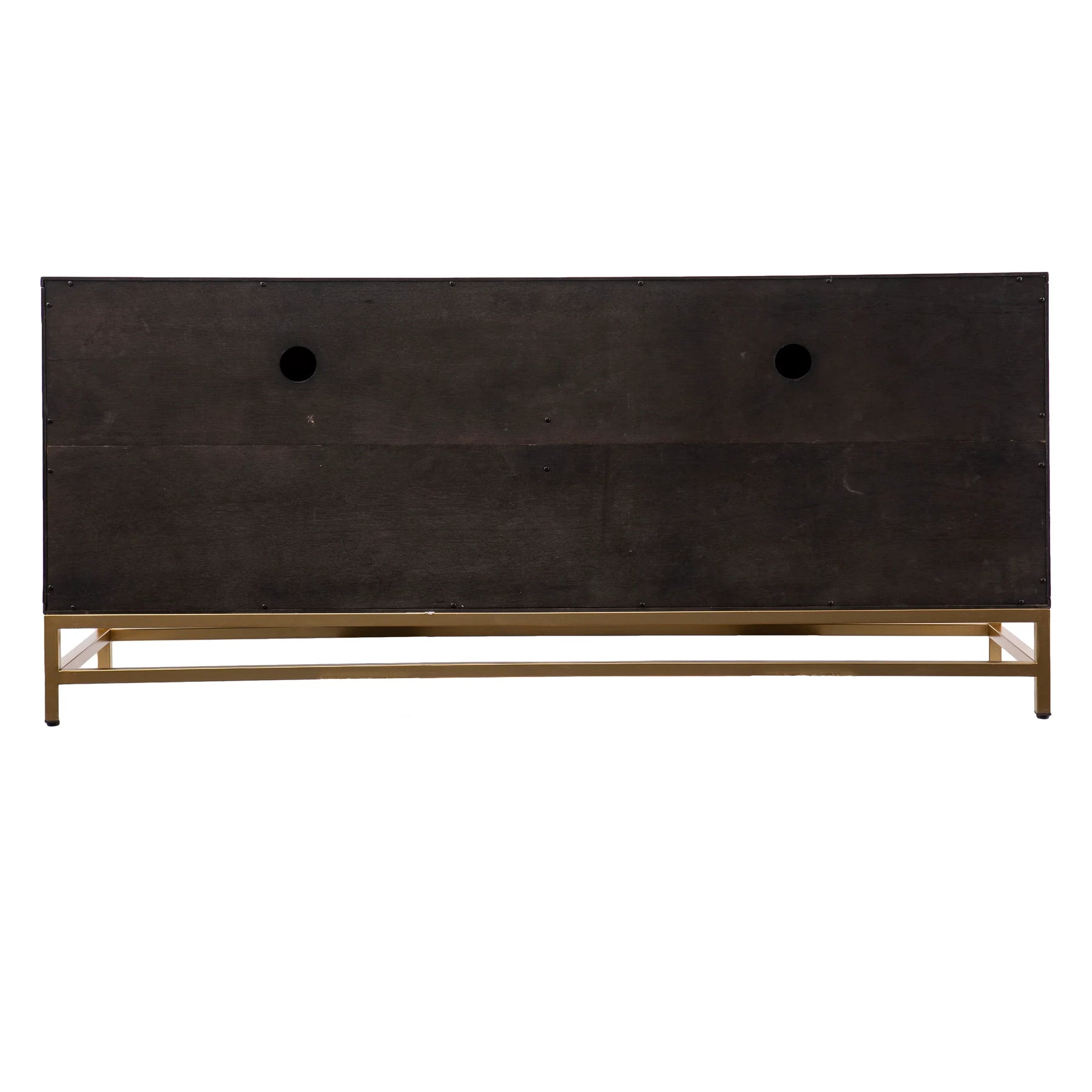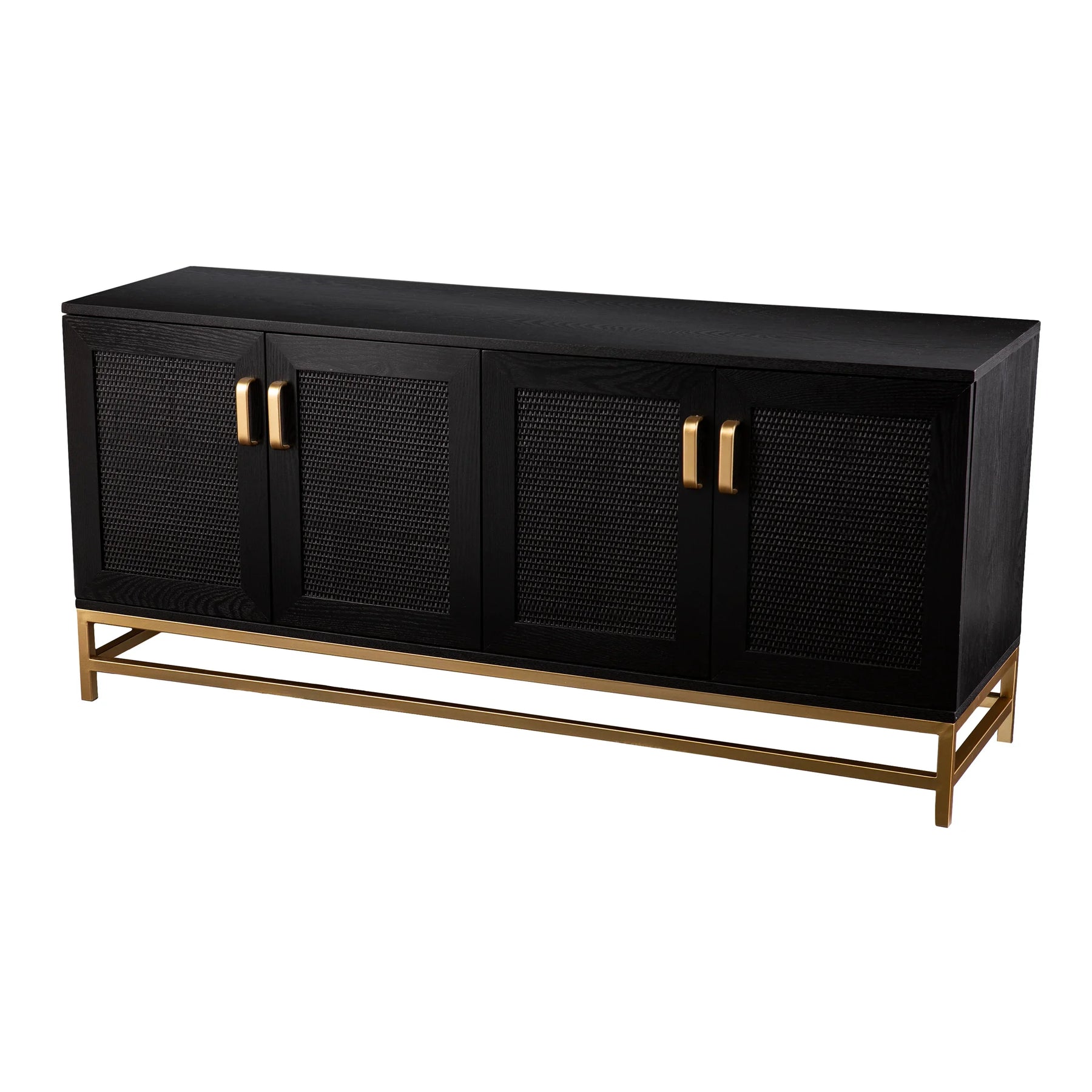 Your media space gets a sleek, sophisticated upgrade with this two-tone media console. Movies and books stay organized with spacious cabinets and adjustable shelves, while rattan accents give your space a hint of natural texture. Add this modern TV stand to your game room for a chic entertainment setup, or place in your family den to enjoy weekly movies nights with flair. Your design goes cool and contemporary with this four-door media cabinet.