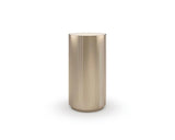 With a bold, yet simple shape, this modern accent table uses pure form and minimal materials to draw attention. The perfect pedestal for a beverage or vase, its sturdy stainless steel base is topped in our Signature Caracole Crème stone, and finished in a Whisper of Gold for added luxury and moments of reflection. Style solo, or group with our Round About short and tall tables in varying heights and diameters to create added interest and dimension.
