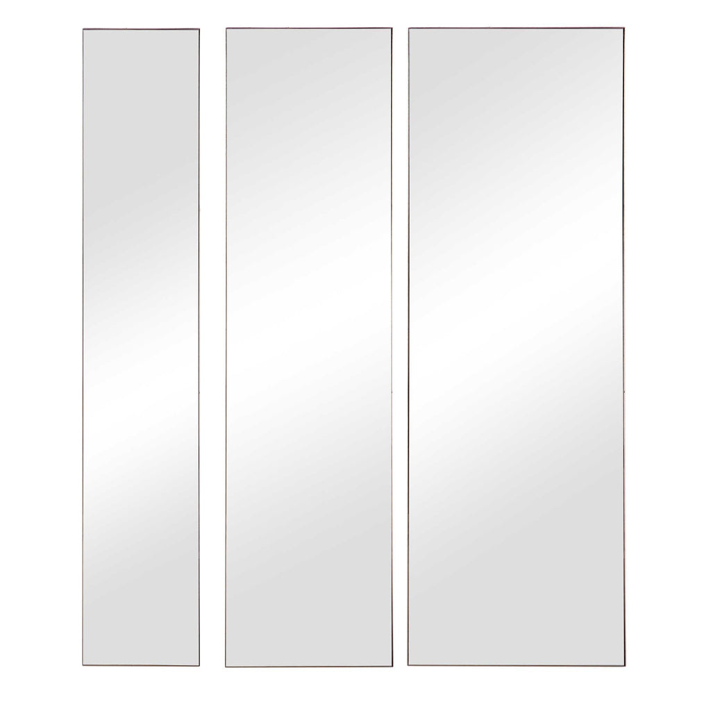 This Set Of Three Mirrors Showcase Simple, Clean Lines With Gold Leaf Finished Metal Profile Frames. Each Mirror May Be Hung Horizontal Or Vertical, Allowing For Multiple Modern Display Options. Sizes: S-8"x47", M-12"x47", L-16"x47"