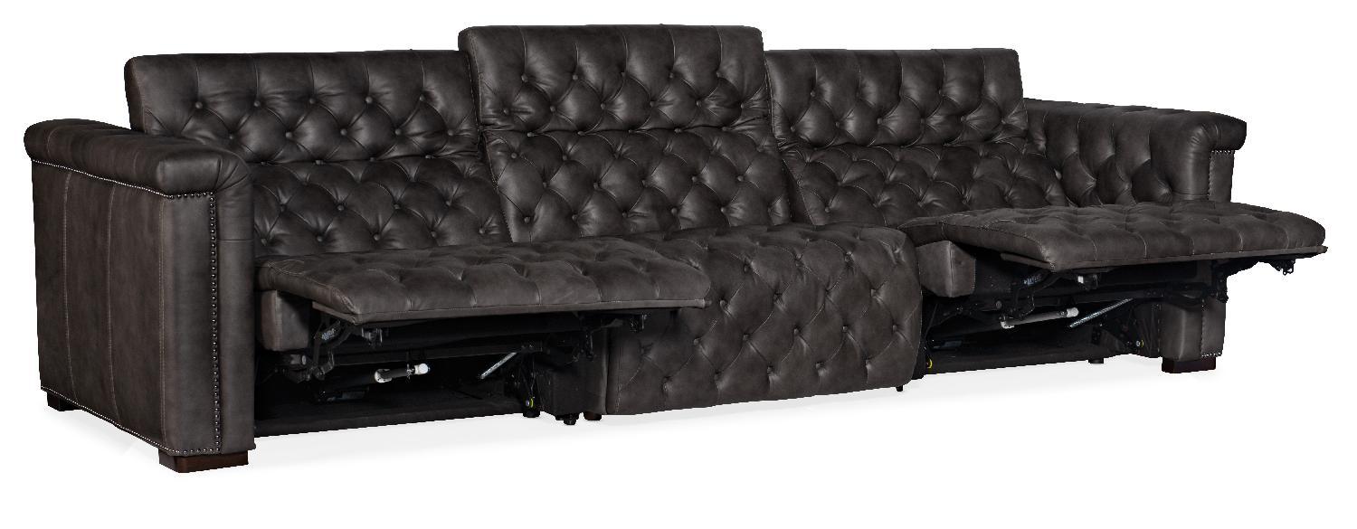 Inspire awe with your family and friends, who will never believe a sofa as stunning as the Savion Grandier has two power reclining ends, and that each of the 3 seats features an adjustable headrest. The individually operated headrests invite you to lean back and relax your upper body while watching TV, reading or conversing, and the end seating units transform to recliners with a smooth power control button, offering exceptional comfort. Savion blends classic elegance with modern flair, combining traditional button-tufted tailoring with a sleek profile back. The beautiful Bellagio Gravel leather cover is finished for stain protection and is hand wiped, giving each piece authenticity and sophisticated appeal.