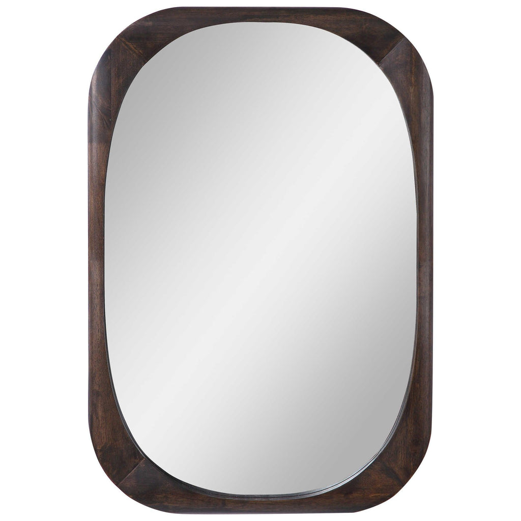 This Mirror Evokes A Mid-century Style With Its Rounded Edges And Minimal, Modern Design. The Solid Wood Frame Is Finished In A Dark Walnut Stain. This Mirror May Be Hung Horizontal Or Vertical.