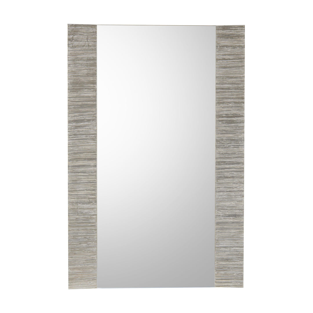 This mirror is bordered on two sides in a linear texture and finished in our Washed Silver with a clear mirror between. It is prepared to hang in portrait or landscape orientation.
