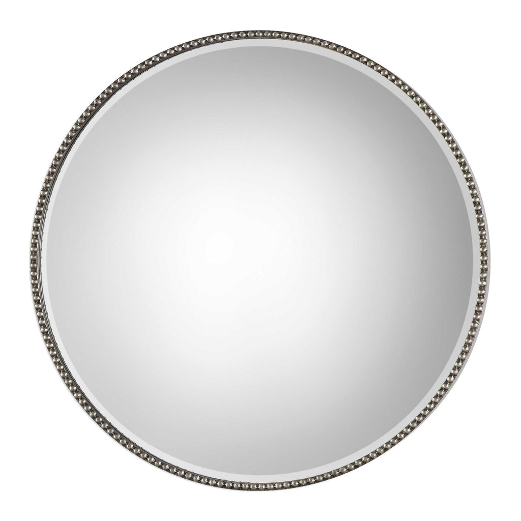 This Petite Iron Frame Features A Beaded Surface With A Deep Profile, Hand Finished In A Lightly Antiqued Silver Leaf. Mirror Has A Generous 1 1/4" Bevel.