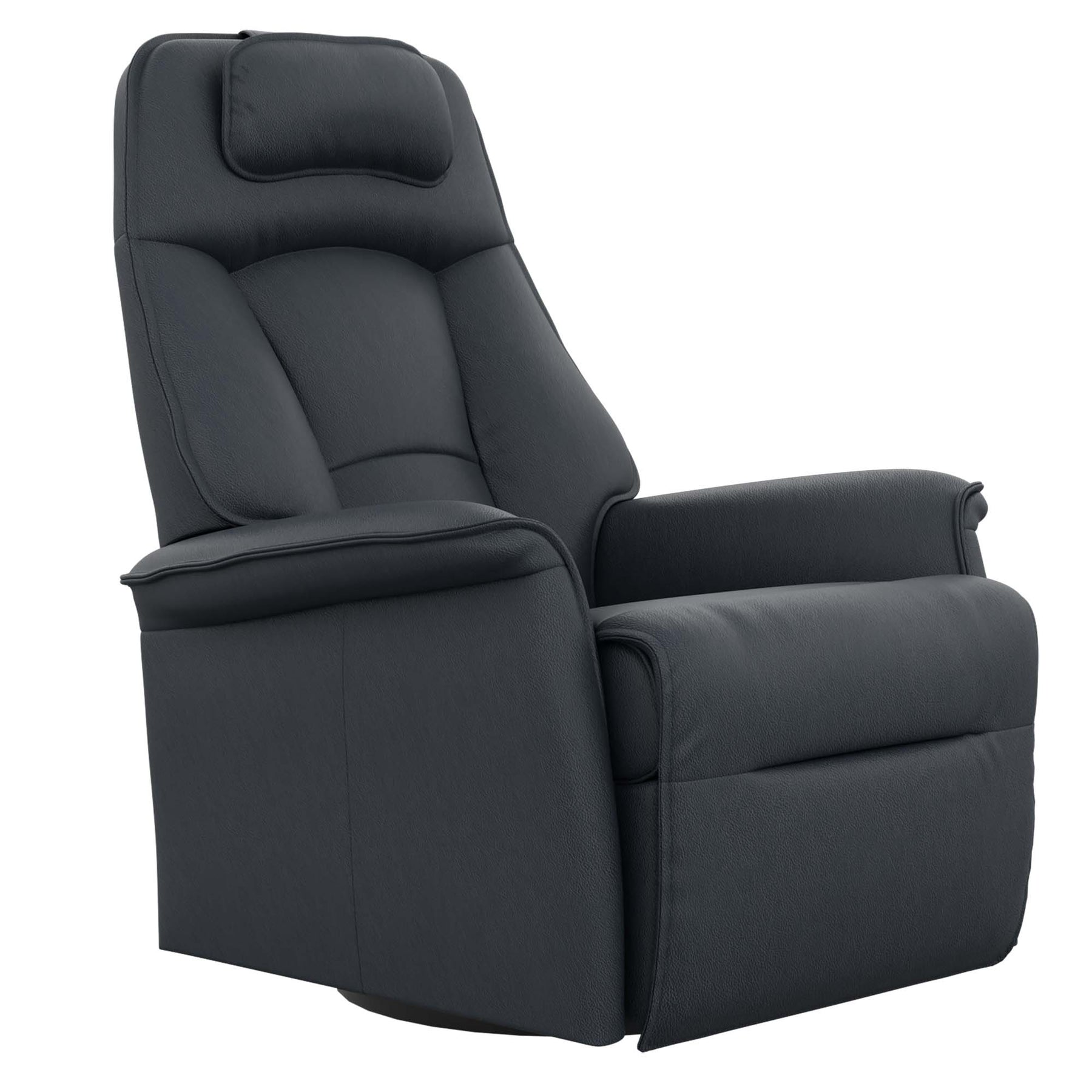 The Fjords Stockholm swing relaxer, featuring an adjustable head pillow and motorized articulating headrest, makes the seating experience ergonomic and gives your lower back correct support. The Stockholm is a swivel/glider/rocker recliner available in motorized version. The design is available in two sizes, small and large. Black base is standard on Stockholm.