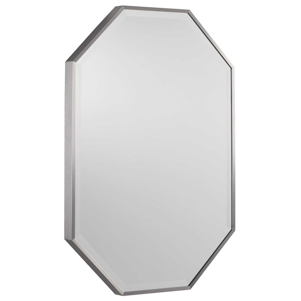 This Traditional Style Vanity Mirror Takes On A More Updated Sleek Look Featuring A Simple Octagon Shape With A Petite Stainless Steel Frame Finished In Brushed Nickel And A 1" Bevel. May Be Hung Horizontal Or Vertical.