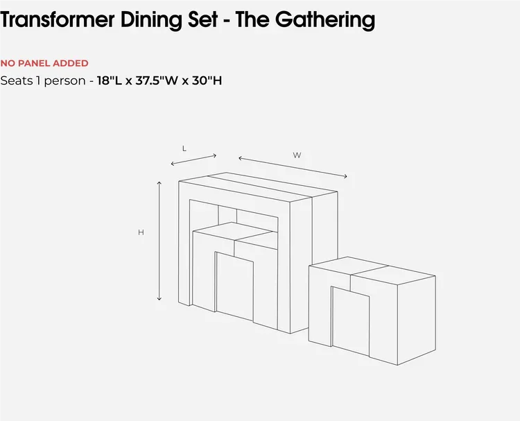 The Practical The Transformer Dining Set - The Practical includes a one-of-a-kind wooden extendable dining table and an expandable dining bench, comfortably seating between 2 to 12 people. This versatile dining table set offers the perfect blend of style and functionality for all your hosting needs. From family dinners to holiday hosting, this extendable dining table set has all the makings to become a centerpiece in your home for years to come.