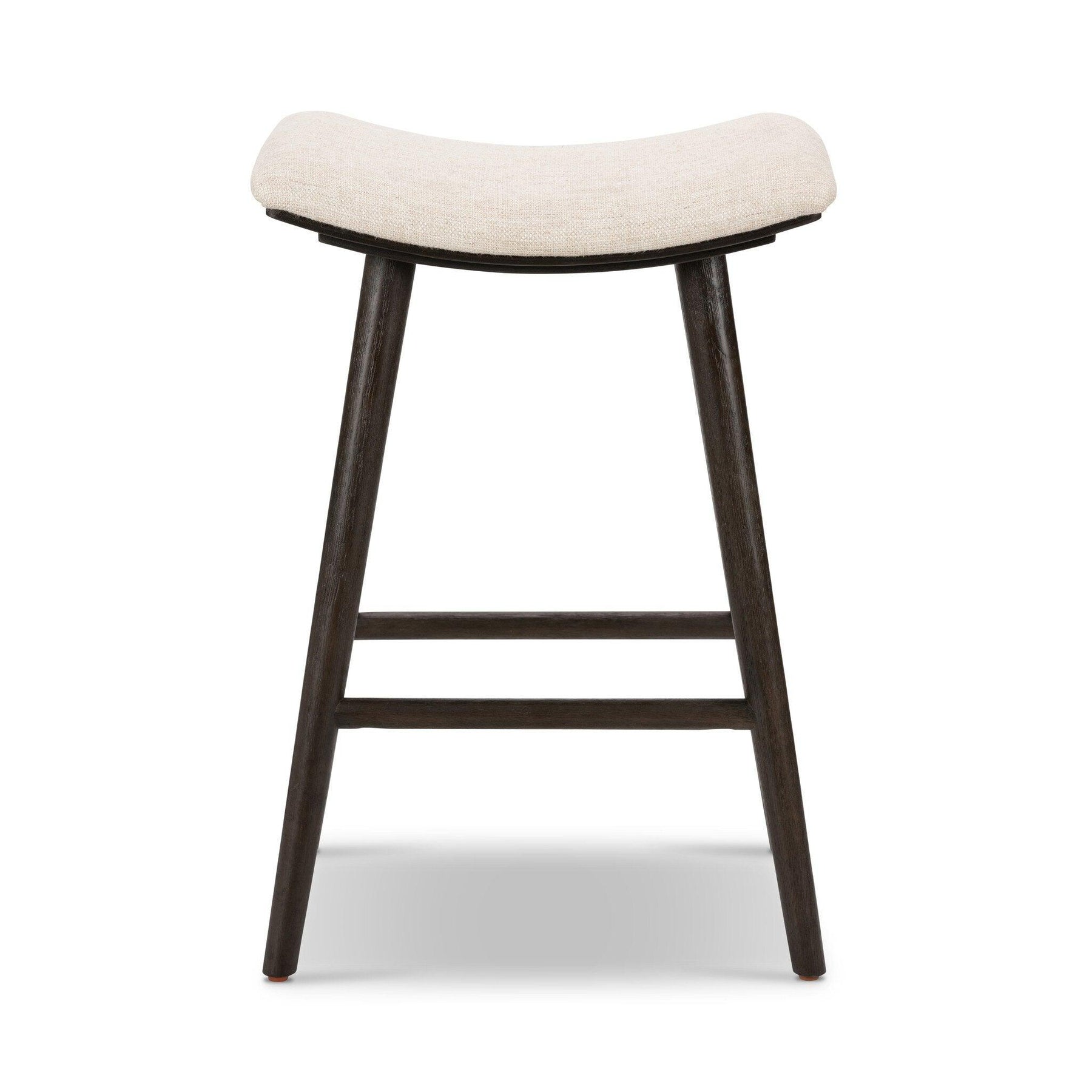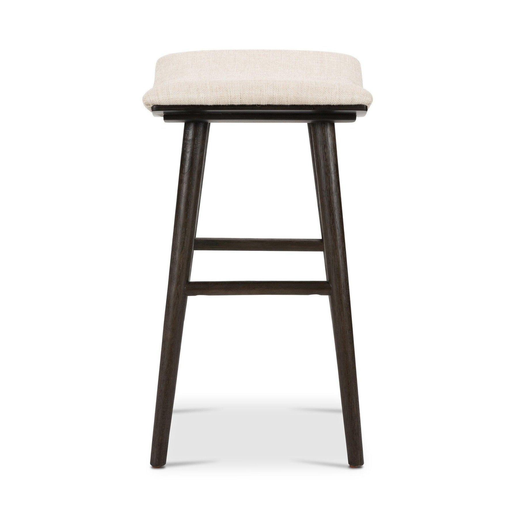 Slim styling meets color contrast for effortless impact. Light carbon-finished oak framing supports a saddle-style seat of natural-toned upholstery.