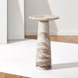 Uplift any corner of your home with the sculptural beauty of Valentina round accent table. The round profile of the table is juxtaposed against the solidarity and hardiness of marble. Crafted entirely in real marble, the table stands upon a refined and sculptural pedestal. Both alluring and visually dynamic, our accent table celebrates the natural veining and tonal variations of marble. It can serve as a sleek and stylish accent to complement your cocktail hours or beautifully display your favorite decor items.