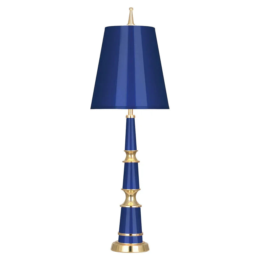 Inspired by scrolling Neoclassical candlesticks, our Versailles lighting collection is boldly traditional and totally today, thanks to a smart combo of powder-coated color with natural brass accents. Packing powerful presence with a small footprint, they're perfect on petite consoles or demilune tables.