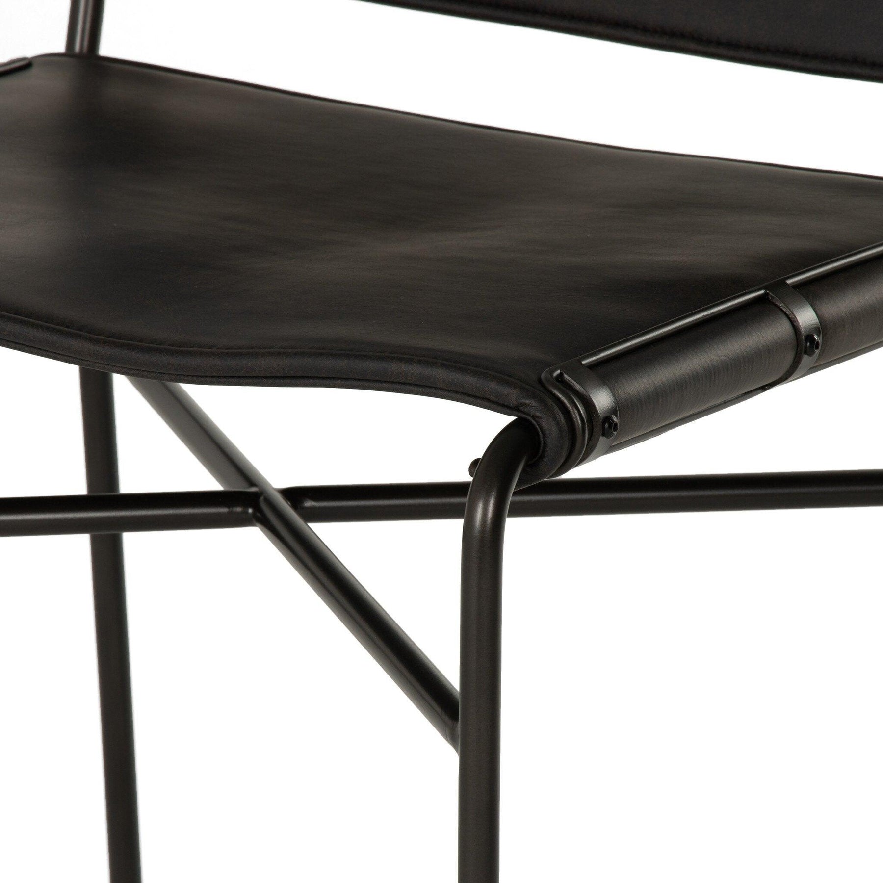 Slim lines and mixed materials combine for ultimate comfort. Architecturally inspired steel tubing is graced by simply contoured black faux leather seating.